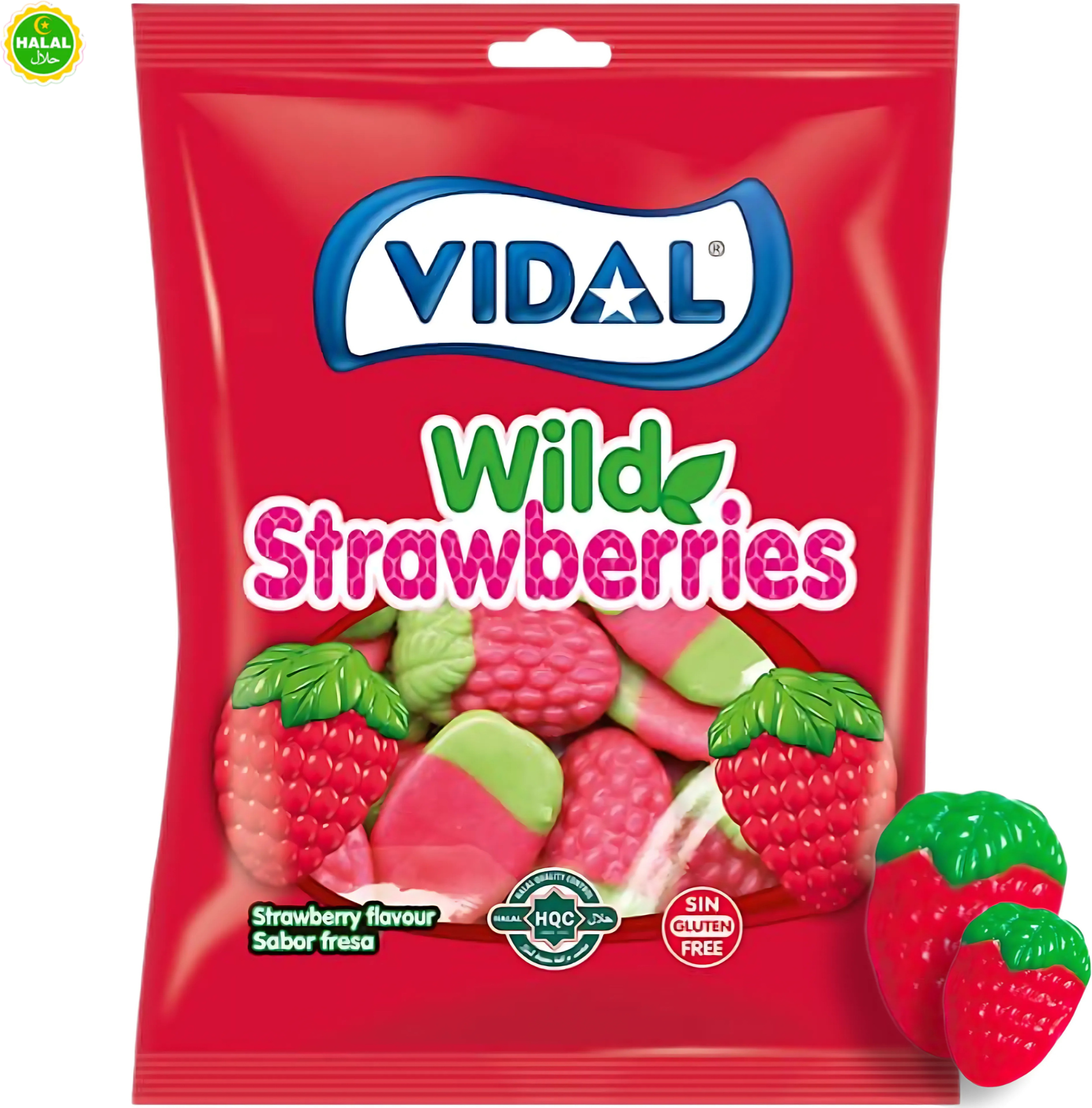 VIDAL - Wild Strawberries HALAL 90 g entführen dich in eine süsse Welt voller Erdbeeraromen. Mit ihrer leuchtend roten Farbe und der saftigen Konsistenz erinnern sie an frisch gepflückte Walderdbeeren. HALAL-zertifiziert und damit für jeden Genussmoment geeignet.